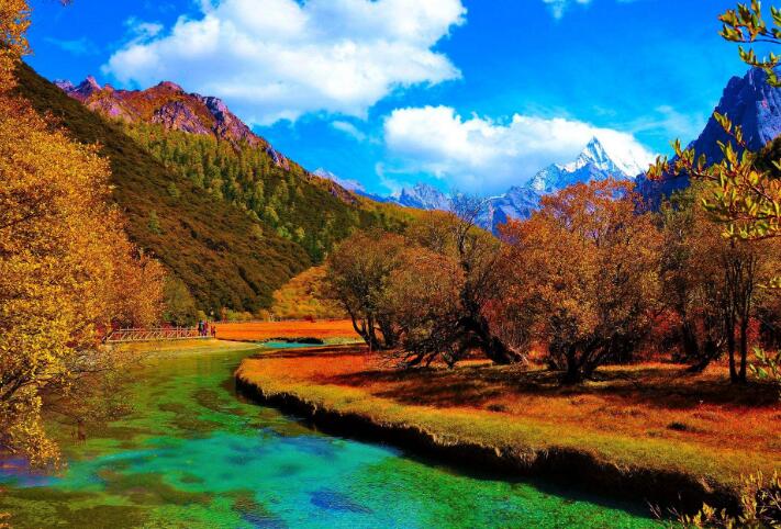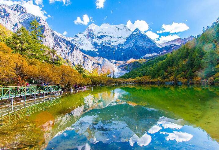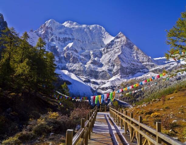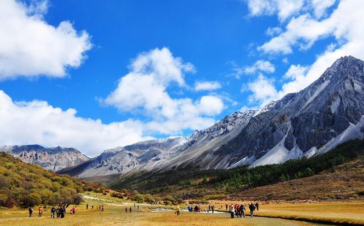 當天游覽線路參考:日瓦鄉~景區觀光車34km~亞丁村龍同壩~景區觀光車3.4km~扎灌崩~徒步0.5km~沖古寺~電瓶車6.7km~絡絨牛場(三怙主雪山)~騎馬5.3km~牛奶海、五色海。(原路返回亞丁村龍同壩)