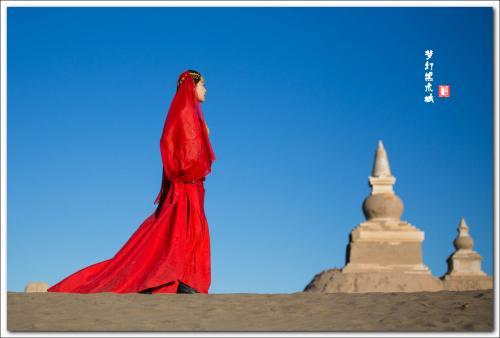 【黑水城】(最佳觀賞時間為下午夕陽西下之際)觀賞日月同輝的奇特景色。途中車覽紅城古堡、大同城遺址,感受蔚藍碧空之下金色戈壁,悠悠黑水城的孤獨、寂寞以及不甘的傾訴。黑水城為國家級文物保護單位,親們切記不可以攀爬城墻哦!