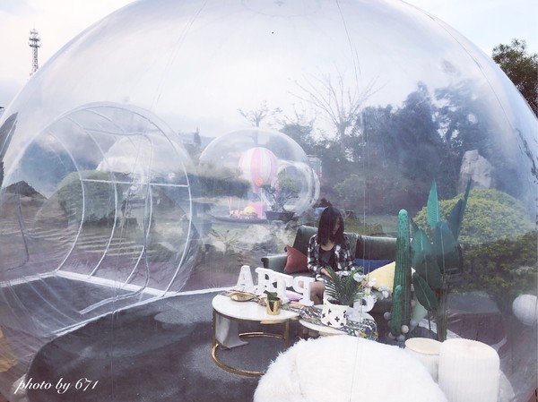 17:00前往【網(wǎng)紅泡泡屋】,整個別院里十幾個大小不一,風格不同的泡泡屋(櫻花房、熱帶風情、海洋球、粉紅木馬、火烈鳥等連體泡泡),輪流拍照打卡凹造型,泡泡屋外還有很多的陽傘藤椅可以看海景吹海風(免門票,消費咖啡果汁小吃拼盤等,費用約25-35元/位,自理哦)