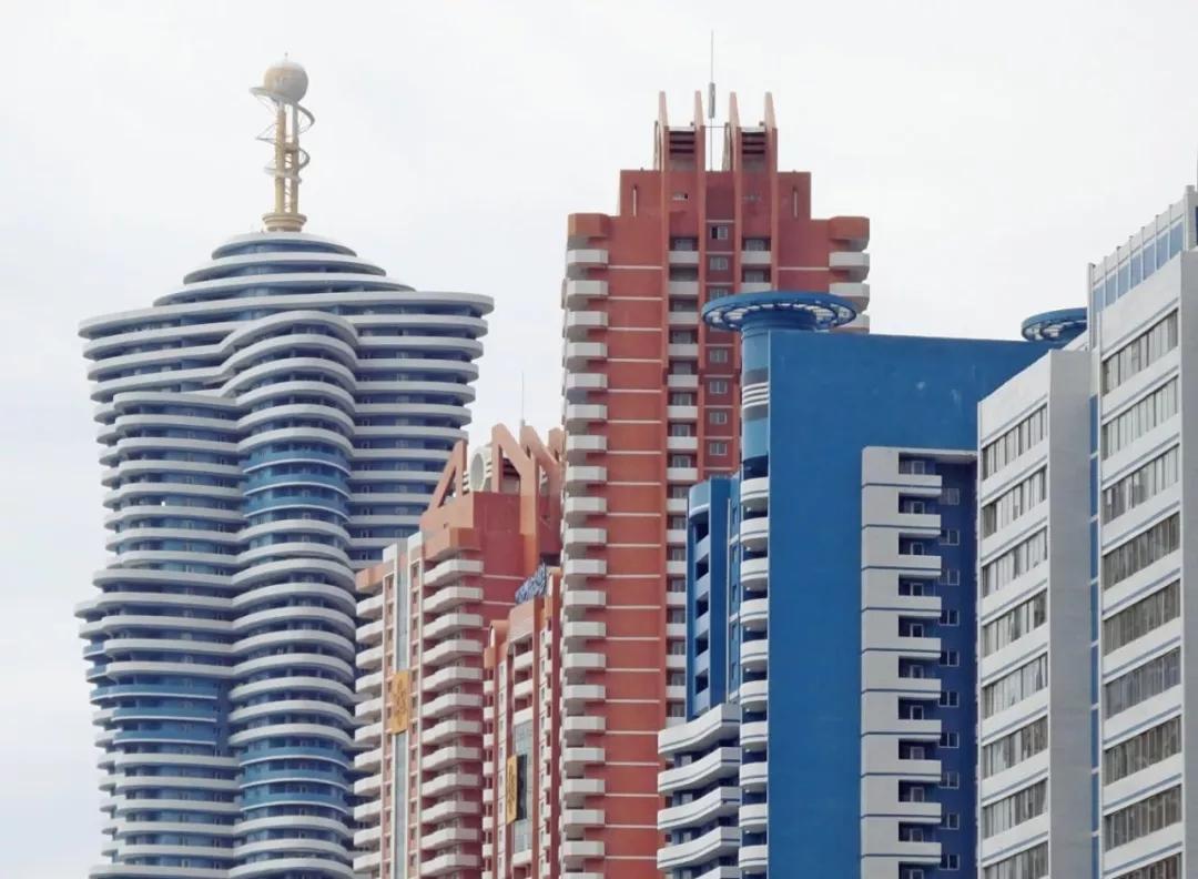 除了XXXL號的建筑外形,在配色上,金正恩也偏愛柔和清新的“馬卡龍色調”。無論是巨型公共建筑還是普通居民樓,無論是室內還是室外,都被粉刷上了藍、橘、粉、綠的涂料。