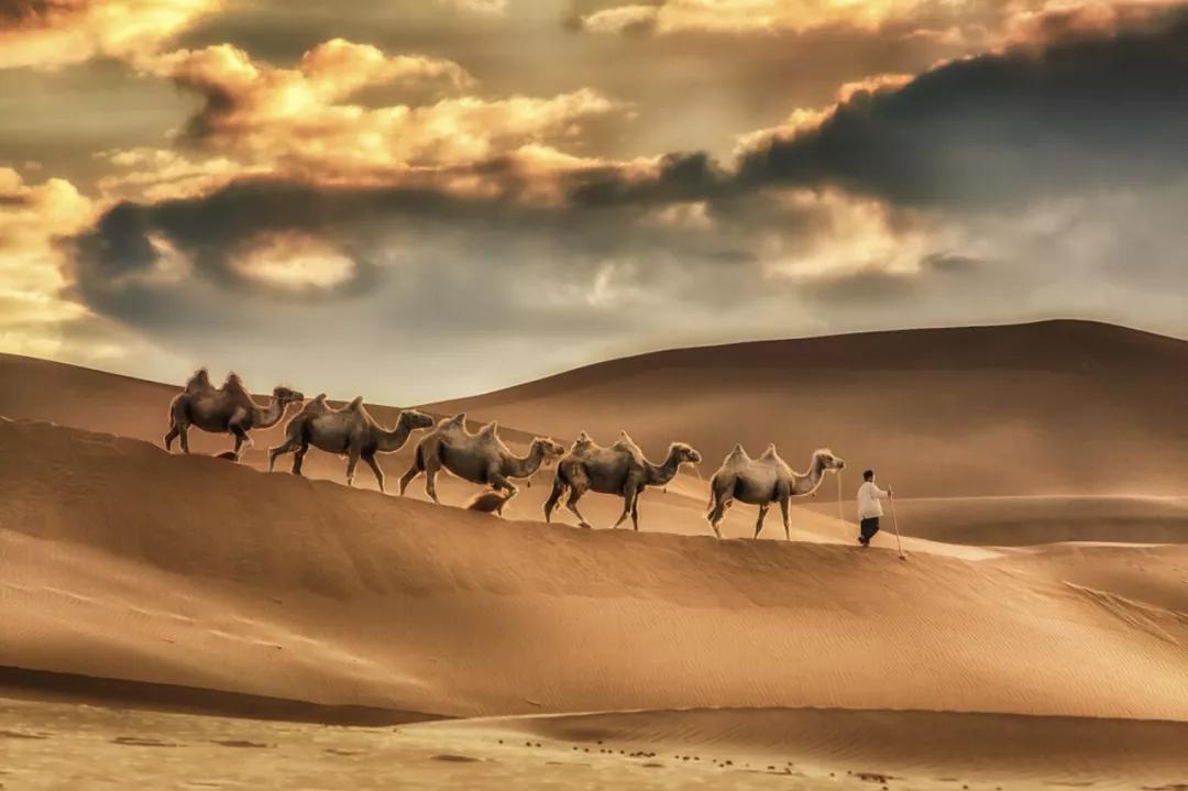 若你想逐日,可以在庫木塔格沙漠來一次沙漠徒步之旅。一淺一深的腳印,目光所及之處都是金燦燦的沙粒,行進途中還有沙窩、沙山等壯觀景象在等待著你。