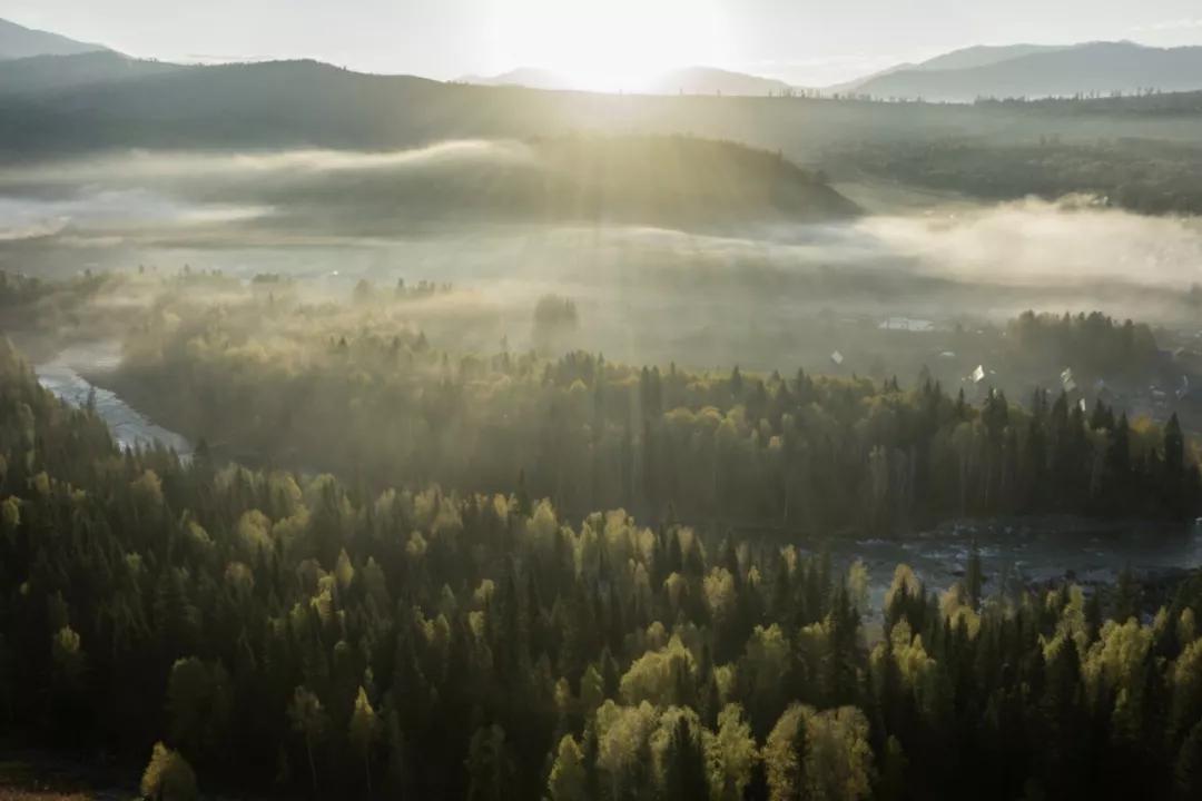 禾木的村落走的都是原始路線,木質的房屋配上原始森林的色彩,每到飯點時,整個村落飄起的陣陣炊煙,就像是人間仙境。觀賞、拍攝整個村落的最佳地點是禾木觀景臺,如若真想拍到好照片,記得早點占領黃金機位。