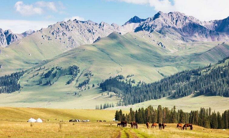 早餐后,前往特克斯。新疆伊犁谷地西的特克斯,位于昭蘇縣境內(nèi),是新疆最美的草原,這里的哈薩克族、柯爾克孜族風(fēng)情獨(dú)特,山清水秀,人文濃郁。特克斯縣縣城是中國(guó)唯一的【八卦城】,建筑風(fēng)格獨(dú)特,后游覽【喀拉峻草原】位于特克斯縣南喀拉峻山,距縣城直線距離約30公里,有簡(jiǎn)易公路相通。海拔1600~2800,喀拉峻系哈薩克語(yǔ),意為"黑色莽原"。喀拉峻草原風(fēng)景獨(dú)特,草豐林茂,主要指闊克蘇河以東,喀甫薩郎河以南,以喀拉峻山為主體,南接瓊庫(kù)什臺(tái),包括瓊庫(kù)什臺(tái),克什庫(kù)什臺(tái)和庫(kù)爾代峽谷,面積約759平方公里。喀拉峻草原是典型的山地草甸類型草原,喀拉峻草原地勢(shì)起伏和緩,視野開闊,草原5~9月碧草茵茵,盛夏之際雨水豐富、日照充足,各種野花恰似點(diǎn)點(diǎn)繁星開遍山野。夏季來(lái)到喀拉峻草原,如同步入花的海洋,暑氣頓消。晚住昭蘇是天馬——伊犁馬的故鄉(xiāng)。