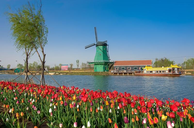 【秦皇河公園】以“一河清泉水、一道風景線、一條產業帶”為理念,是一處集水利、文化、旅游、休閑、實用為一體的綜合水利風景區;由荷蘭尼塔集團設計的大片花田、風車景觀仿佛置身荷蘭小鎮,濃濃的異域風情讓游客流連忘返;同時,秦皇河岸線曲折,水質潔凈,植被覆蓋率達到95%以上,河邊有遍布眾多的水生植物和自由棲息的水鳥,綠樹田園、農舍炊煙、藍天白云相映成趣,營造出一派生機盎然的迷人景象。