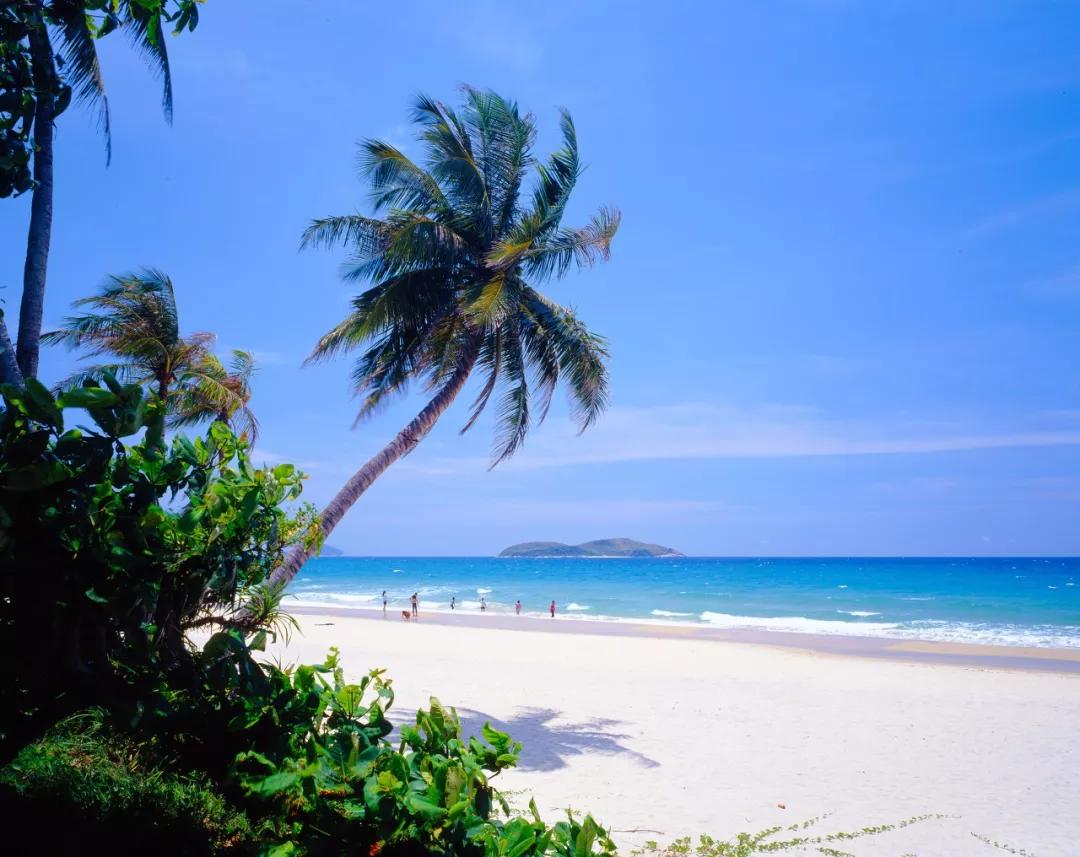 灣內(nèi)植被繁茂,有大片椰林、橡膠等熱帶作物,椰樹(shù)檳榔,相映成趣。白沙碧海,藍(lán)天流云,自成畫(huà)卷,更有青梅翠帶,溪流湖泊,秀嶼奇石,細(xì)浪柔沙,美不勝收。