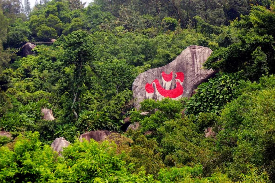 電視劇連續(xù)劇《紅樓夢(mèng)》片頭中有一塊神姿仙態(tài)的“飛來(lái)石”,它就在被稱為“海南第一山”的東山嶺上。