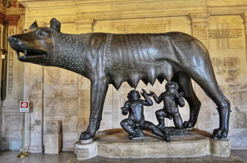 傳說公元前8世紀,古希臘君主兩個襁褓中的兒子,在權位爭斗中被人投入臺伯河,順流漂到這座7丘之地,兩個嬰孩兒喝狼奶撿回小命。