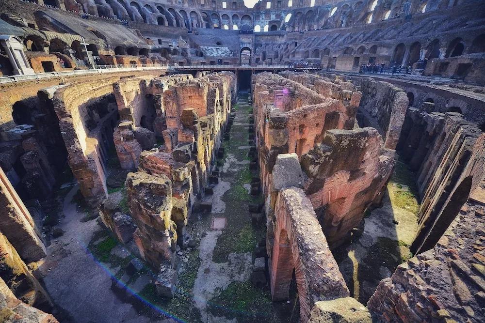 在這層地板之下,交錯縱橫的石制走道,曾是著名人士隱蔽的通道和角斗士及野獸出場的走廊。