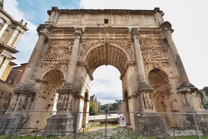 在羅馬現存的3座凱旋門中,塞維魯凱旋門夾在另外兩座凱旋門中間,位于古羅馬廣場的顯耀位置,紀念塞維魯和他的兩個兒子卡拉卡拉和蓋塔在兩次波斯戰爭中的勝利。
