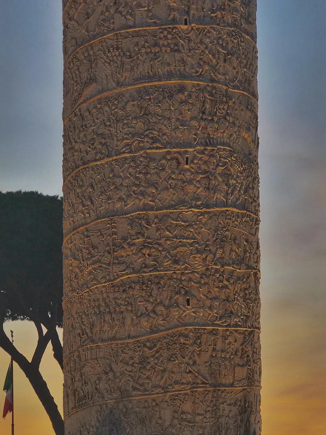 這是一條盤旋上升的石柱,石柱外立面用大理石雕刻著圖拉真的豐功偉績,雕工的精細和奇特的設計令人贊嘆,你也許要拿著望遠鏡繞著柱子轉上無數圈,才能讀完這位偉大帝王的一生。