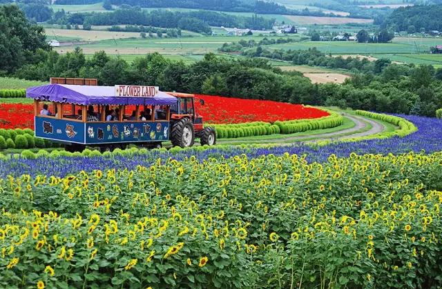 富良野位于北海道中央,故有“臍眼之城”的別稱。這里每年夏天都舉行充滿幽默的“北海臍眼節”,屆時有 3000人組成的舞蹈隊在市內的主要道路上游行,人人都在肚子上畫一張臉,十分有趣。富良野有絢爛多彩的四季,冬天水蒸氣結成的水珠晶瑩閃亮,春天路邊到處盛開著觀音蓮,夏天有芬芳的薰衣草,秋天有滿山的紅葉。