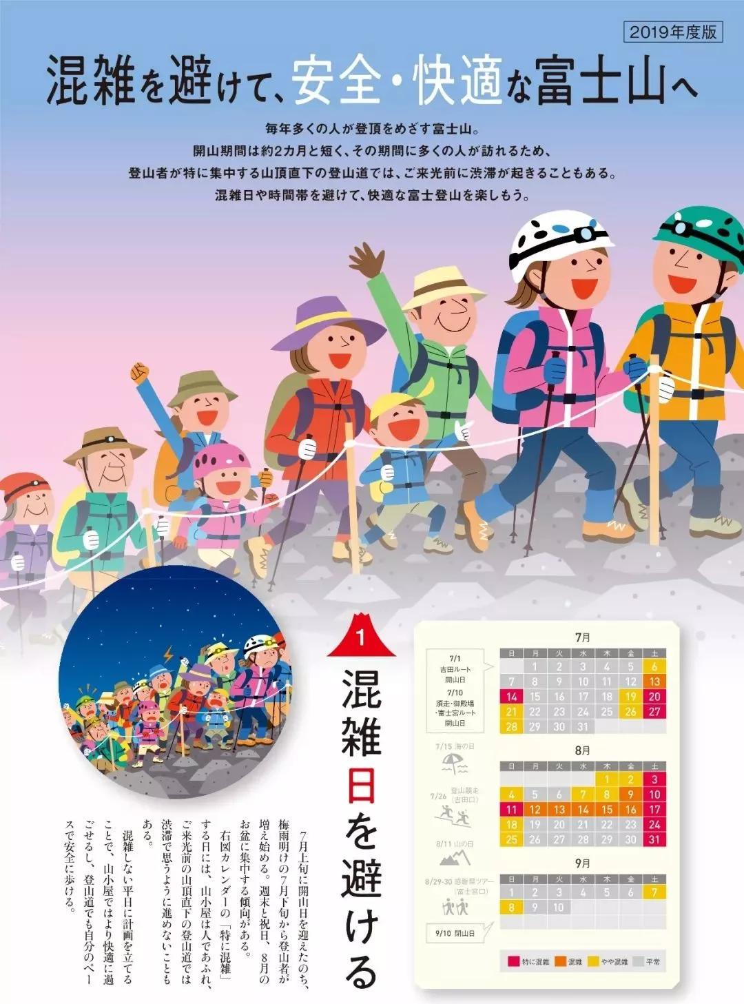 富士山登山高峰的日歷,可以避開人群集中的日期進行登山