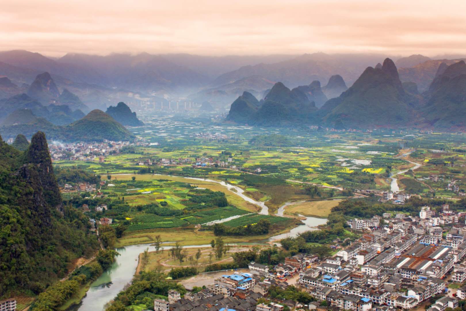 興坪鎮位于陽朔東北部,距縣城25公里,漓江在此繞了一個大彎。