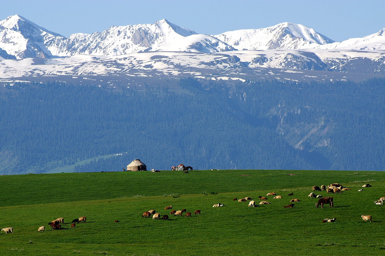 昭蘇草原介紹一望無垠的昭蘇草原,綠草如織,駿馬馳騁,牛羊遍野;秀美的夏塔古道、夏塔谷地,綠草如茵、野花遍地、蜂飛蝶舞、五彩斑闌,清澈碧綠的夏塔河猶如一條玉帶,岸邊的座座氈房好似珍珠點綴其上。