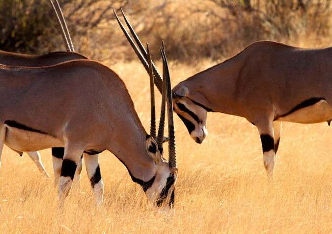 從肯尼亞雪山上流經到地勢低的桑布魯的伊瓦索尼羅河(EwasoNyiro)是桑布魯的生命之源,當地人稱之為桑布魯之水(WaterSamburu),因為水的顏色呈棕色,又稱之為棕色的水(Brown;Water),也正是因為這條寶貴的支流,給干旱的桑布魯增色不少,在這里,隨處可見成群的大象在河邊嬉戲,鱷魚在泥水里懶洋洋的沐浴日光浴,成群的河馬匍匐在河中,當然這些動物在肯尼亞其他地區(qū)也可以看到,但是桑布魯所特有的五大動物(BIGFIVE)是極其罕見的,葛式細紋斑馬(Brevyzebra),東非劍羚(Beisaoryx),藍腿索馬里鴕鳥(Somaliostrich),網狀長頸鹿(Reticulatedgiraffe),長頸羚(Gerenuk)。這里多達380余種的鳥類同樣吸引著鳥類學家的眼球,象犀鳥,非洲食魚鷹等。
