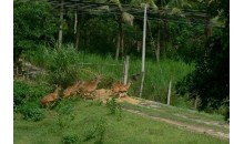 海榆公路中線111公里處,屯昌縣木色木庫三面臨水的半島上,便是目前中國南方最大的綜合性養鹿場之 一——楓木鹿場。 該場占地380多畝,60年代建成,至今已有700多只坡鹿、水鹿、馬鹿、梅花鹿、糜鹿、黃鹿嬉戲在椰林搖翠、芳草如茵的樂土上。這里,美麗的湖水,綠色的原野,設計奇妙的建筑,加上已經馴化、可人心意的鹿群,構成美妙有趣的童話世界。