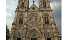 廣州石室天主教堂在市區一德路,清同治二年奠基,光緒十四年落成,歷時二十五年,是全國最大的一座以高直尖頂為特色的哥特式教堂。教堂結構為一巍峨高聳的雙尖石塔,其上掛有大鐘一組,堂深78.69米,東西寬35米,高度由地面至天面平臺為28.7米,由天面平臺至塔頂端為29.8米,共高58.5米,堂內是尖形肋骨尖叉的拱形穹窿,正面的大門和四周玻璃鑲嵌,可避免室外強光射入,使室內光線保持柔和。