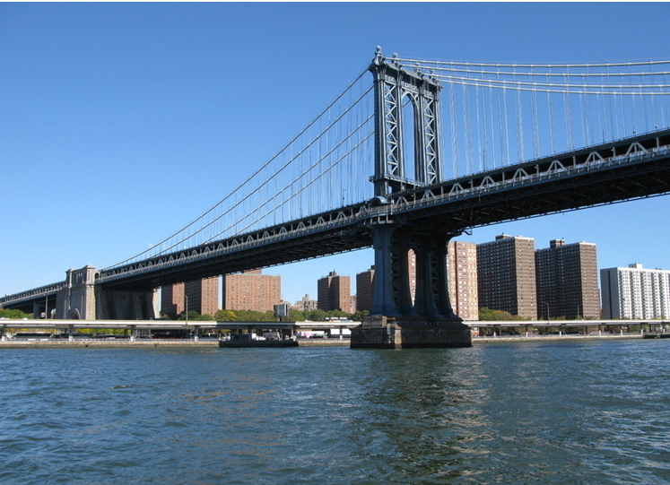 紐約的布魯克林大橋橫跨紐約東河,連接著布魯克林區(qū)和曼哈頓島,1883年5月24日正式交付使用。大橋全長(zhǎng)1834米,橋身由上萬(wàn)根鋼索吊離水面41米,是當(dāng)年世界上最長(zhǎng)的懸索橋,也是世界上首次以鋼材建造的大橋,落成時(shí)被認(rèn)為是繼世界古代七大奇跡之后的第八大奇跡,被譽(yù)為工業(yè)革命時(shí)代全世界七個(gè)劃時(shí)代的建筑工程奇跡之一。