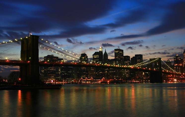 布魯克林大橋是1883年5月24日下午二時(shí)啟用通行的(維多利亞女皇誕辰日),開幕時(shí),每輛汽車收費(fèi)美金五元。如今,每天從橋上經(jīng)過的車輛約十四萬(wàn)輛,單車千多架,行人兩千名。日落的時(shí)候,從布魯克林沿著木道步行,可以觀賞曼哈頓的高層建筑及美麗的街景,可說是紐約旅游的最亮點(diǎn)。每年7月4號(hào)美國(guó)獨(dú)立紀(jì)念日在此放煙火。
