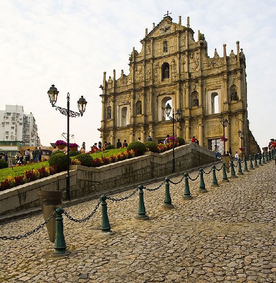 澳門大三巴即圣保羅教堂的遺跡,位于澳門大巴街附近的小山丘上。 圣保羅教堂建成于1637年,整座教堂體現了歐洲文藝復興時期建筑風格與東方建筑特色的結合,是當時東方最大的天主教堂。1835年,圣保羅教堂被一場大火燒毀,僅殘存了現在的前壁部分。因為它的形狀與中國傳統牌坊相似,所以取名為“大三巴碑坊”。 版權所有山東聊城聊之旅國際旅行社有限公司,轉載必究! 精美絕倫的藝術雕刻,將大三巴牌坊裝飾得古樸典雅。無論是牌坊頂端高聳的十字架,還是銅鴿下面的圣嬰雕像和被天使、鮮花環繞的圣母塑像,都充滿著濃郁的宗教氣氛,給人以美的享受。 現在,大三巴牌坊已經成為澳門的象征之一,也是游客澳門之行的必到之地。 看過大三巴碑坊,游客不妨到與之相鄰的古炮臺城堡。登臨氣勢雄偉、酷似歐洲古堡的古炮臺城堡,人們不僅能夠看到十余門巨型鑄鐵古炮,發思古之幽情,還可以飽覽澳門全景呢。 大三巴牌坊是“澳門八景”之一,位于炮臺山下,左鄰澳門博物館和大炮臺名勝,下連68級石階,極顯巍峨壯觀。大三巴牌坊為圣保祿教堂遺址(“三巴”即“圣保祿”的粵語音譯)。該教堂始建于1637年,先后經歷3次大火,屢焚屢建,直至1835年10月26日,最后一場大火將其燒得只剩下教堂正門大墻,此墻因類似中國傳統牌坊而得名“大三巴牌坊”。牌坊壁上雕塑精美,其中的中國石獅頭,是西方宗教藝術與中國傳統石雕藝術相結合的精品。