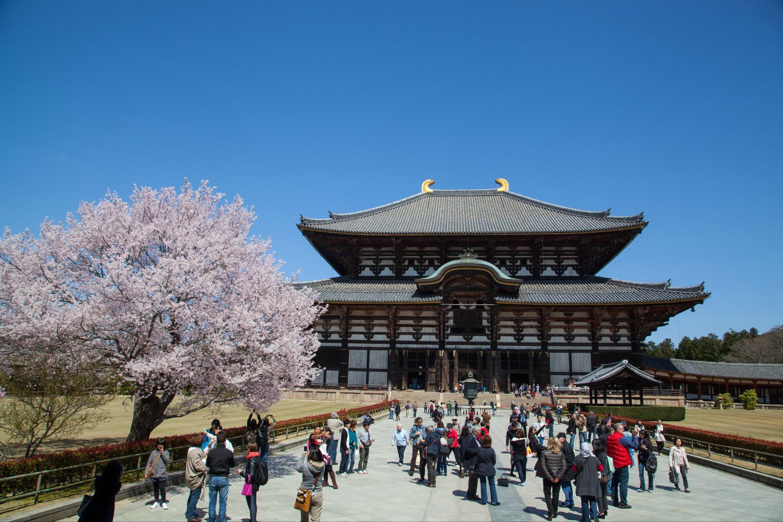 東大寺大佛殿,正面寬度57米,深50米,為世界最大的木造建筑。大佛殿內,放置著高15米以上的大佛像?盧舍那佛。東大寺院內還有南大門、二月堂、三月堂、正倉院等。版權所有山東聊城聊之旅國際旅行社有限公司,轉載必究!南大門有很著名的雙體金剛力士像。二月堂能夠俯視大佛殿和眺望奈良市區(qū)。
