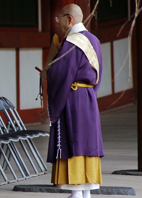 為國家和萬民悔過,須有特定的集團和大型儀式。因此,由僧團共同舉行法會以悔過,修二會便是其中的儀式之一。僧侶被稱為“練行眾”,現(xiàn)在由11人組成,分工各不相同。授戒師、大導師、結印誦唱陀羅尼咒的咒師,及總管修二會內外雜務的堂司等4人被稱為四職,其余7人名平眾,而且還有許多人輔佐練行眾,直接參加法會的人多達30余名。