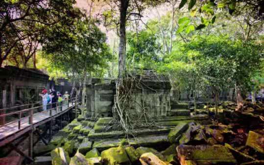 崩密列不屬于常規(guī)的吳哥景區(qū)范圍內(nèi),所以一般的旅游團行程中很少會包括這個景點,因為確實有些太荒僻了。崩密列在廢棄的庭院和塔之間,樹木草叢茂密地生長著。崩密列護城河呈十字型對稱建造,中心為未修繕好的殘垣斷壁。從護城河進入寺廟中心的路上,有很多當?shù)氐呢毨『蛴慰推蛴?。很多年來,這里一直都是難以到達的地方,不過鋪筑的道路使得很多游客都慕名而來。