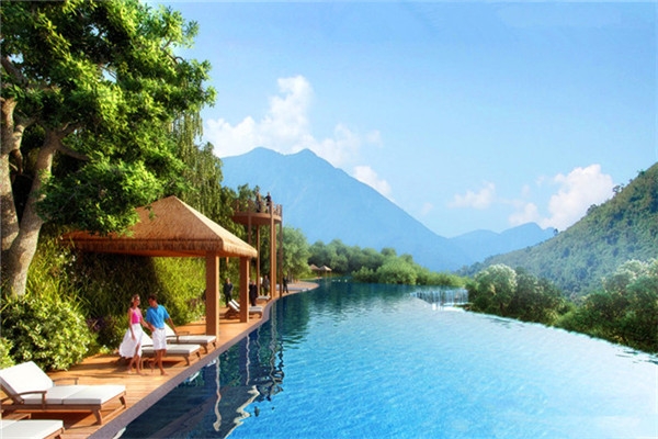 度假村總體規劃面積1000畝,已開發建設面積300畝,前期投資已達3億元,后期項目將分期投資,總投資為10億元。一期項目擁有五星級標準的山頂溫泉酒店客房200余間、半山溫泉別墅30套、同時可容納500人就餐的宴會廳、自助茶餐廳,大、中、小型會議室及多功能會議廳、KTV娛樂會所、購物中心、SPA美容保健按摩中心、休閑娛樂中心、燒烤場、戶外拓展基地、健康體檢中心等設施,將為您提供優質高效的超值服務,讓您流連忘返!