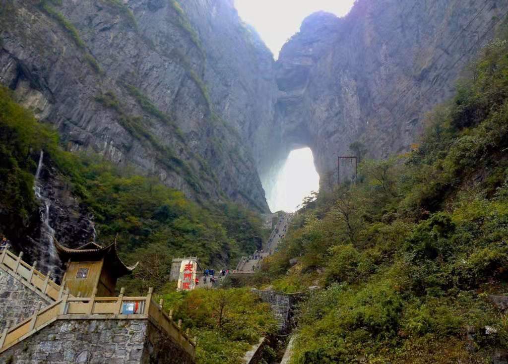 界天門山國家森林公園的天門山主峰,有一個巨大的山洞,這就是舉世聞名的天門洞。