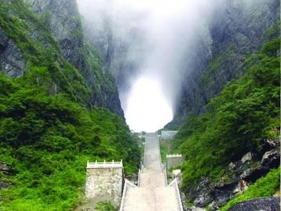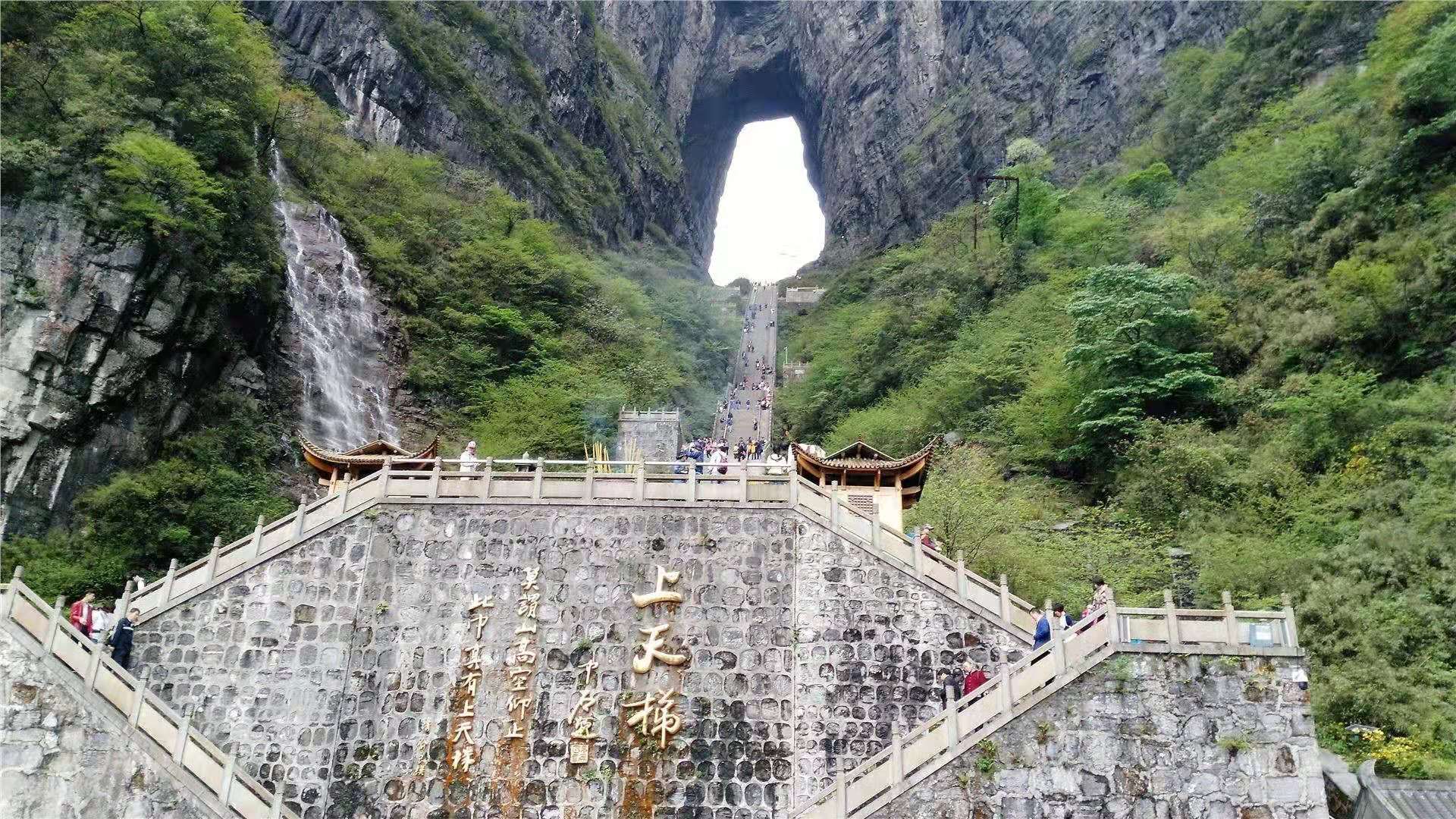 在古老的中國大地上,有一個人間通往仙界桃源的大山,武陵山脈之魂——天門山。您只要從天門山腳登上九百九十九級石階梯,就會到達通往仙界的大門——天門洞。版權所有山東聊城聊之旅國際旅行社有限公司,轉載必究!碩大的門洞足夠現代人駕駛飛機穿越而過,是世界上最高的天然溶洞,該天門洞形成的時間比唐僧取經時收取的由石頭爆出的大徒弟孫悟空還早500余年(公元263年溶洞形成)。它是天門山中一塊大石塊由于吸聚天地之靈氣噴溥洞開而成。從此,凡人間偉大人物仙逝,該天門山上不管是晴空萬里還是滿天星斗,都瞬間電閃雷鳴,風雨交加,猶如天門洞落淚,傾盆而下……淚水沿著絕壁山崖瀑布而瀉,遠遠望去,似天上銀河下九洲。這現象至今仍無法開解!