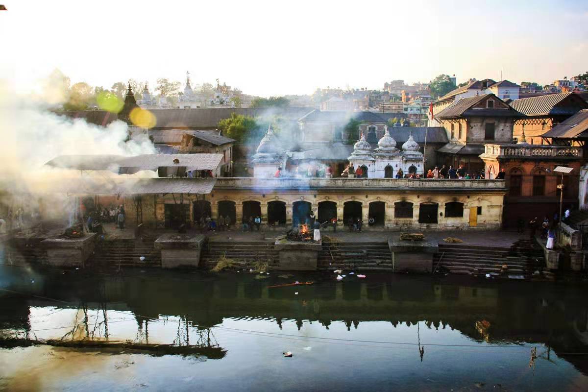 的,位于下游的四座平臺是平民百姓的火葬場。尼泊爾人的火葬儀式非常簡單,橋兩側的火葬臺分別為不同身份的人所使用,越靠近神廟的位置身份也就越尊貴。如果是父親去世,家中的長子要在河邊剃光頭發,并且走進河里凈身,經過簡單的儀式用白布包起,版權所有山東聊城聊之旅國際旅行社有限公司,轉載必究!放在緊靠河邊的平臺上由四根原木搭的架子上焚燒,三個小時后灰燼被推到河里,隨水而逝,印度教認為以這樣的方式可以使靈魂脫離軀體而得到解脫,人們將骨灰撒在河中,河水最終將匯入印度恒河…… 。尼泊爾舉行火葬儀式時,并沒有禁止游客拍照,大部分游客都是站在橋上或是坐在對岸觀看。