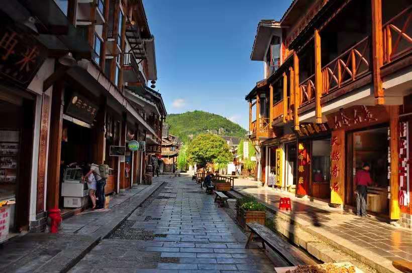 溪布街整體規劃以街巷與院落結合布局,利用建筑形體和體量的組合,以線性飄積理論為原則,進行有機的布置。建筑力求浪漫、飄逸和通透,體現時尚和拙樸的氣質,版權所有山東聊城聊之旅國際旅行社有限公司,轉載必究!又滿足功能和審美需求。建筑立面造型把土家族和苗族的傳統語言,通過藝術的再加工和簡潔的抽象變形,作為建筑表現的構成元素,使立面風格統一,古樸大氣。