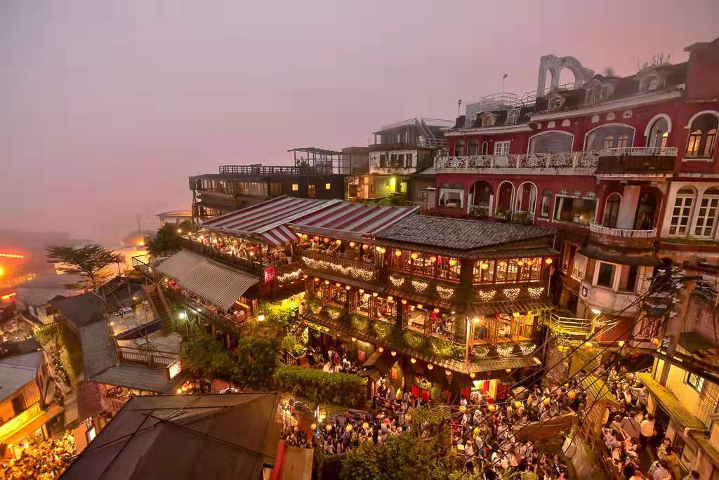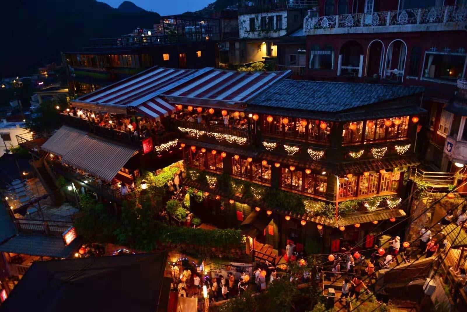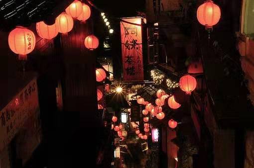 九份商圈主要范圍以聚集在基山街、豎崎路及輕便路等街道為主。人文歷史景觀如臺陽礦業(yè)事務(wù)所、彭園、五番坑口、升平戲院、九份金礦博物館等,而位于九份上,往下可俯視基隆嶼、八斗子、番仔澳、鼻頭角等地的海景,往上可眺望雞籠山景。九份日夜氛圍不同,于白日可俯瞰海景,感受九份老街旺盛人氣,于夜晚一切歸于寧靜,靜靜坐在茶樓間,細(xì)品九份寧靜氛圍,往外看,僅剩盞盞漁火于海面上。
