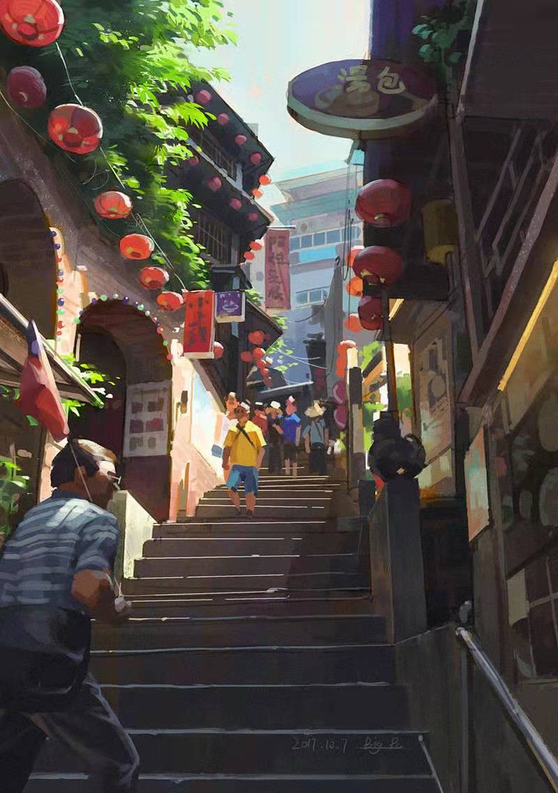 九份的房屋順應(yīng)山勢,鱗次櫛比地蓋在一起,狹窄的街道和陡直的石階,高高低低,彎彎曲曲,是九份最具特色的景觀,行走時,你感覺像是走在住家的屋頂上。鄉(xiāng)土小吃芋仔番薯、九份第一家茶坊及九份文史工作室皆位于此路上。然隨著觀光業(yè)的發(fā)展,因文明的沖擊,九份已逐漸步上現(xiàn)代化的腳步。石頭鋪就的街道兩旁全是商鋪,街上的人摩肩接踵,但卻絕無大聲叫賣和喧鬧的音樂。人們慢慢地走,細(xì)細(xì)地看,喜歡什么就停下來問問價錢,盡管人多,卻沒有喧囂嘈雜之聲,讓人感覺非常舒服。