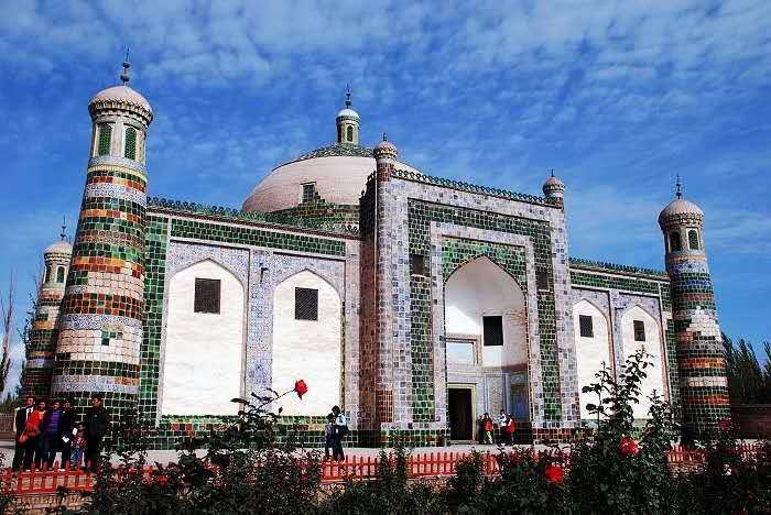 阿帕霍加墓與香妃墓坐落在喀什市東郊5公里處的浩罕村,是一座典型的伊斯蘭教式的古建筑群。陵墓始建于1640年前后。據(jù)說(shuō)墓內(nèi)葬有同一家族的五代72人。因其中葬有明末清初喀什著名伊斯蘭教“依禪派”大師阿帕霍加而得名。阿帕霍加是墓中第二代人,曾一度奪得葉爾羌王朝的世襲政權(quán),更成為17世紀(jì)“依禪派”伊斯蘭教的首領(lǐng),名望遠(yuǎn)遠(yuǎn)超過(guò)其傳教大師的父親。