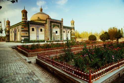 香妃墓坐落在喀什市東郊5千米的浩罕村,系自治區(qū)的重點(diǎn)文物保護(hù)單位。