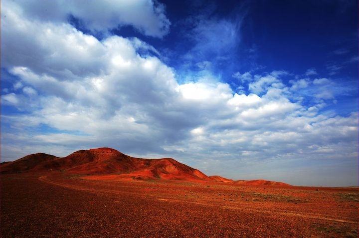 準(zhǔn)葛爾盆地,是我國的第二大盆地,被稱為“史前地質(zhì)博物館”。這里有美麗的五彩城,有大片的硅化木和恐龍化石。距離烏魯木齊約250公里,位于準(zhǔn)噶爾盆地東南部的火燒山便是其中一景。火燒山和火焰山不同,火焰山因溫度高而聞名天下,而火燒山是因?yàn)槠渖襟w顏色而聞名。