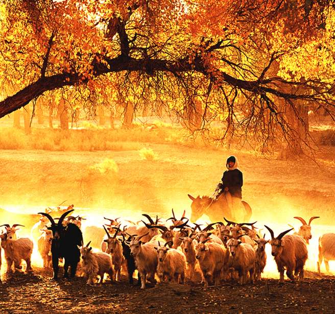 化的植物,大多是野生,被人們譽為“沙漠勇士”。胡楊林是一種神奇的群體,它們耐寒、耐熱、耐堿、耐澇、耐干旱。胡楊生長期漫長,由于風沙和干旱的影響,很多胡楊樹造型奇特、詭異,是一種神奇的自然景觀和獨特的人文景觀,堪稱大漠中的一顆綠色明珠,所以胡楊樹有“活三千年不死,死三千年不倒,倒三千年不朽”之稱。版權所有山東聊城聊之旅國際旅行社有限公司,轉載必究!每年9、10月,當第一場秋霜,大片的胡楊林由綠變黃,一眼望去,陽光下金色的樹葉趁著湛藍的天空于風中婆娑起舞,那種強烈的反差,鮮明的影調,亮麗的色彩,足以令任何語言文字顯得蒼白無力。胡楊是中亞地區唯一適合生長的喬木,它是大自然漫長進化過程中幸存下來的寶貴物種。它嫵媚的風姿、倔強的性格、多舛的命運激發人類太多的詩情與哲思。古往今來,胡楊已經成為一種精神而被人們所膜拜。