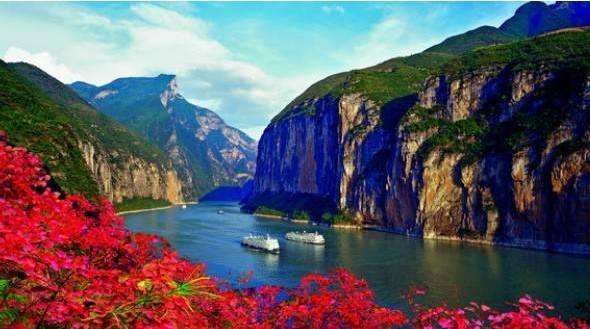 奔騰咆哮的長江,一進峽谷便遇上氣勢赫赫的夔門。夔門兩岸的 山峰,陡削如壁,拔地而起,把滔滔大江逼成一條細帶,蜿蜒于深谷之中。這里河寬只有一、二百米,最窄處不過幾十米;而兩岸主要山峰可高達1000-1500米。這里峽深水急的江流,綿延不斷的山巒,構成了一幅極為壯麗的畫卷。正如郭沫若《過瞿塘峽》一詩所云:“若言風景異,三峽此為魁”。