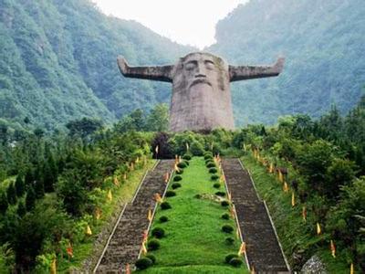 神農(nóng)祭壇的主體建筑是神農(nóng)巨型牛首人身雕像,此像高21米,寬35米,相加為56米,以示中華56個民族緊密團(tuán)結(jié),欣欣向榮。雕像立于蒼翠群山之間,以大地為身驅(qū),雙目微閉,洞察秋毫,似在思索宇宙。祭祀?yún)^(qū)內(nèi),踩在腳下的是代表天和地的圓形和方形圖案,在代表地的方形圖案中,五色石分別為五行學(xué)說中的金、木、水、火、土。近處,高10米的圖騰柱分別立于祭壇的左右兩邊,柱上的大小牛首以示神農(nóng)氏為牛首人身,子孫后代繁衍之意。圖騰柱的前方有兩幅大型浮雕,展現(xiàn)了神農(nóng)氏一生的豐功偉績。兩幅浮雕之間設(shè)有九鼎八簋(古時人們用以煮盛的物品,現(xiàn)為中華民族的最高祭祀禮器)和鐘鼓樓以供炎黃子孫在此祭拜先祖,尋求庇佑。登高343級臺階,便來到了雕像前的瞻仰臺(古時為天子祭禮,瞻仰的地方)。