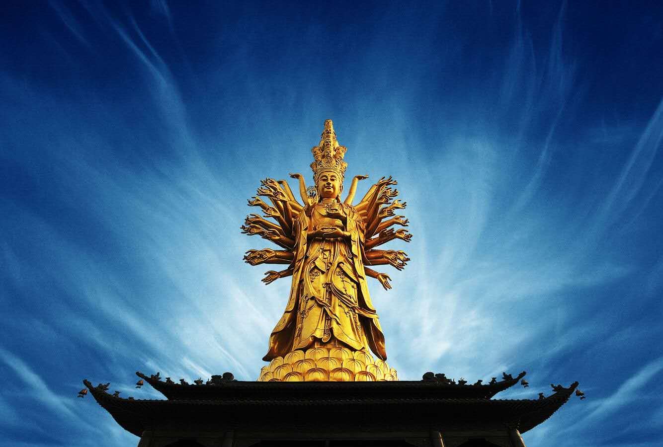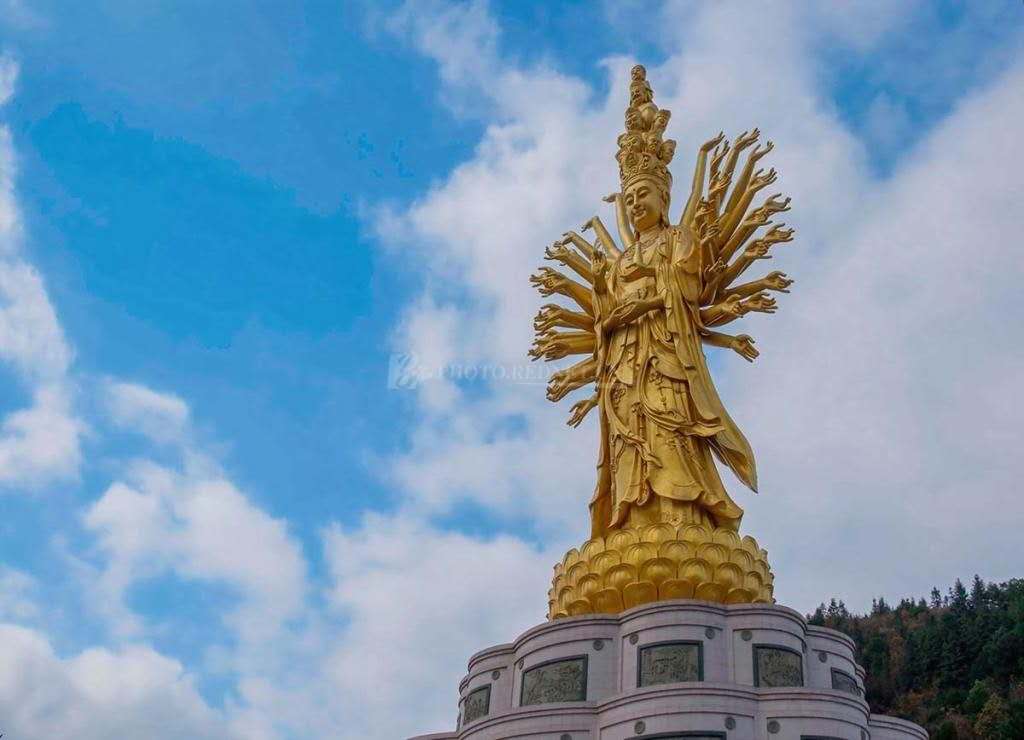 位于密印寺的后面,有高達99.19米的千手觀音, 雄偉壯觀,人在其下,如同觀音踏蓮駕云而來。萬佛靈山公園拜道呈菩提樹狀,共有吉祥、如意、蓮生、平安四大廣場,共有臺階619級,象征觀世音菩薩誕辰之日。主佛像周圍還有33尊觀音化身像,圍繞主佛像。