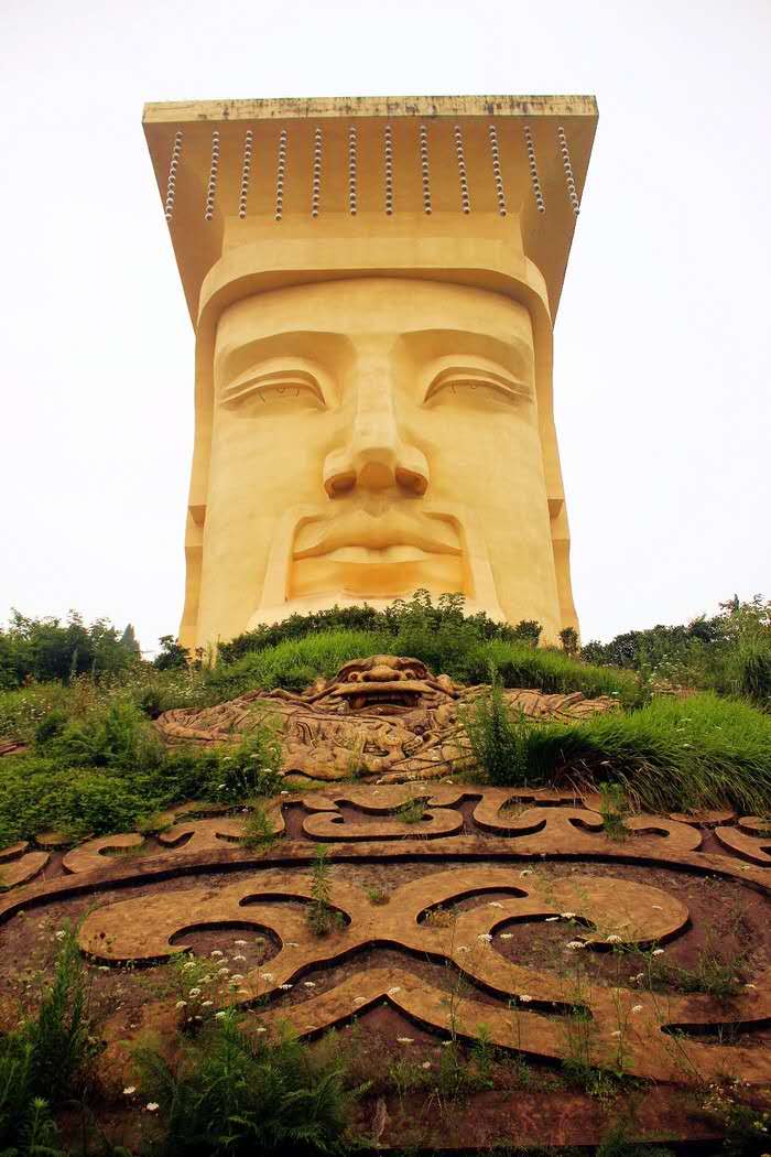 在五魚山玉皇圣地里,整體建筑遵照“太極”、“四象”、“五行”、“八卦”的傳統意象建筑進行布局,以“玉皇大帝”的神鬼文化體系為主題,依山而建,宣揚傳統的信仰文化。在五魚山上,疊落而下的水霧,撲面而至,清新怡人,偶爾被山風所卷,時聚時散,聚攏時,現浩瀚無際的云海,神奇壯觀,有“云漫三清”之景;形散時,一池三仙山,一跌九龍泉,龍噴水霧,八仙居于其間,遮掩三清灣,文王問道,儀態萬千。山水間變幻的水霧,不斷形成祥云、瀑布、煙霧,云霧繚繞,最為奇特,為五魚山景觀之特色。由下至上的觀賞順序,移步換景,以疊落的水霧震撼,緩流而溫宛動人,在彩色的太陽照射下,彩虹頓現,一際天河遠遠望去,懸掛在南天門上,營造出“無序中有序,有序中無序”的自然之美,甚為壯觀,令人嘆為觀止。尋宗者漫游其間,可“聞”天之神韻曼舞,“品”仙之蟠桃盛會,“嘗”鬼神之博大精深,“感”人之心曠神怡,從而醍醐灌頂,流連忘返其間。