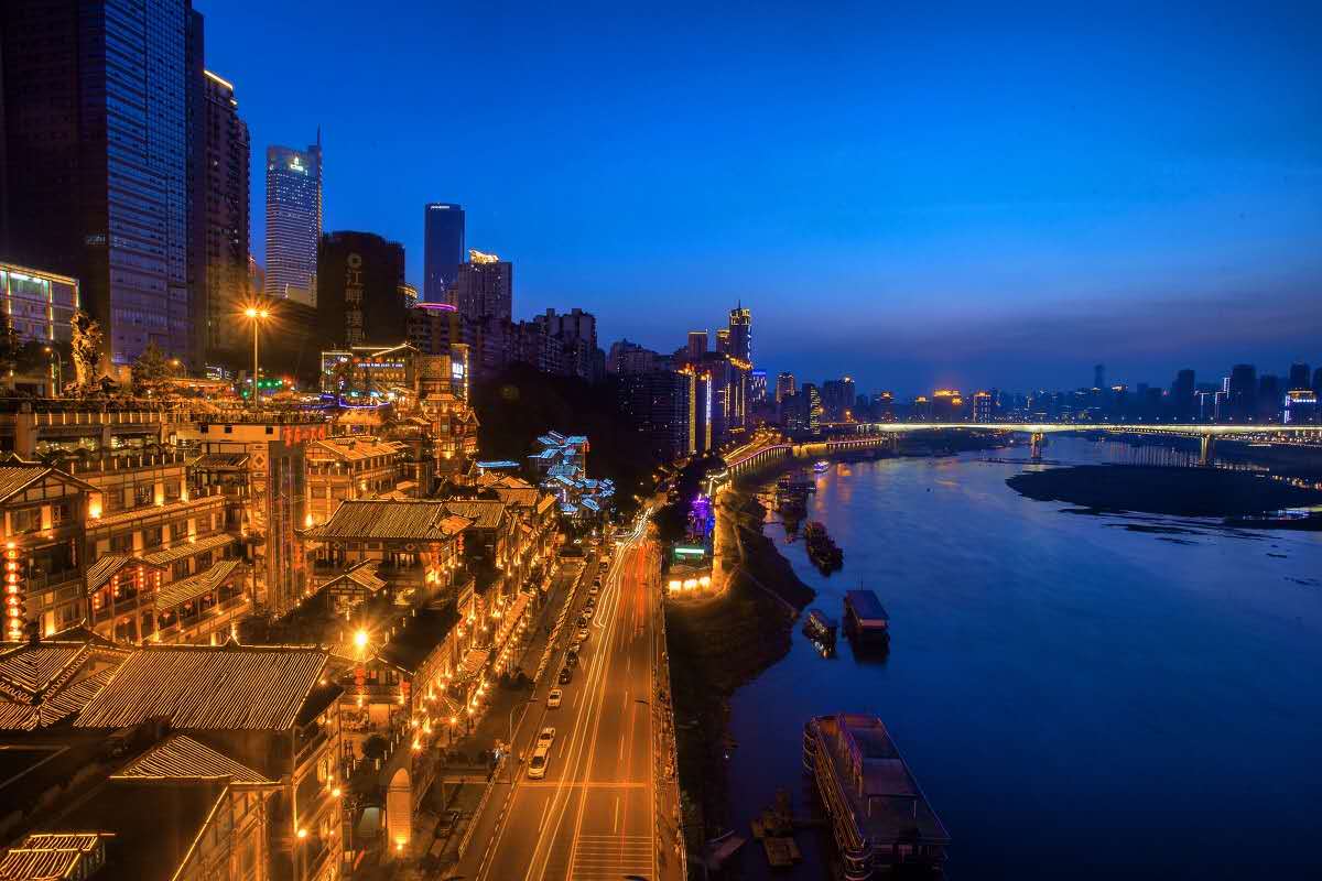 洪崖洞位于重慶市渝中區嘉陵江濱江路,北臨解放碑滄白路,南接江濱路,洪崖洞沿嘉陵江全長約1.2里,建筑面積4.6萬平方米。