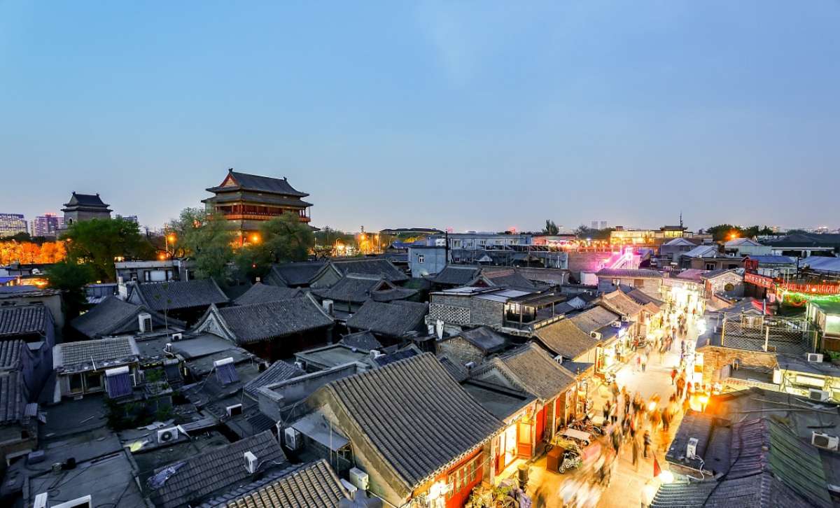 鼓樓位于北京城中軸線的地安門外大街北端,為古代城市的報(bào)時(shí)臺(tái)。清代劃每夜為五節(jié),每節(jié)為兩小時(shí),晚7時(shí)至9時(shí)(戌時(shí))曰定更(又稱起更或初更);9時(shí)至11時(shí)(亥時(shí)