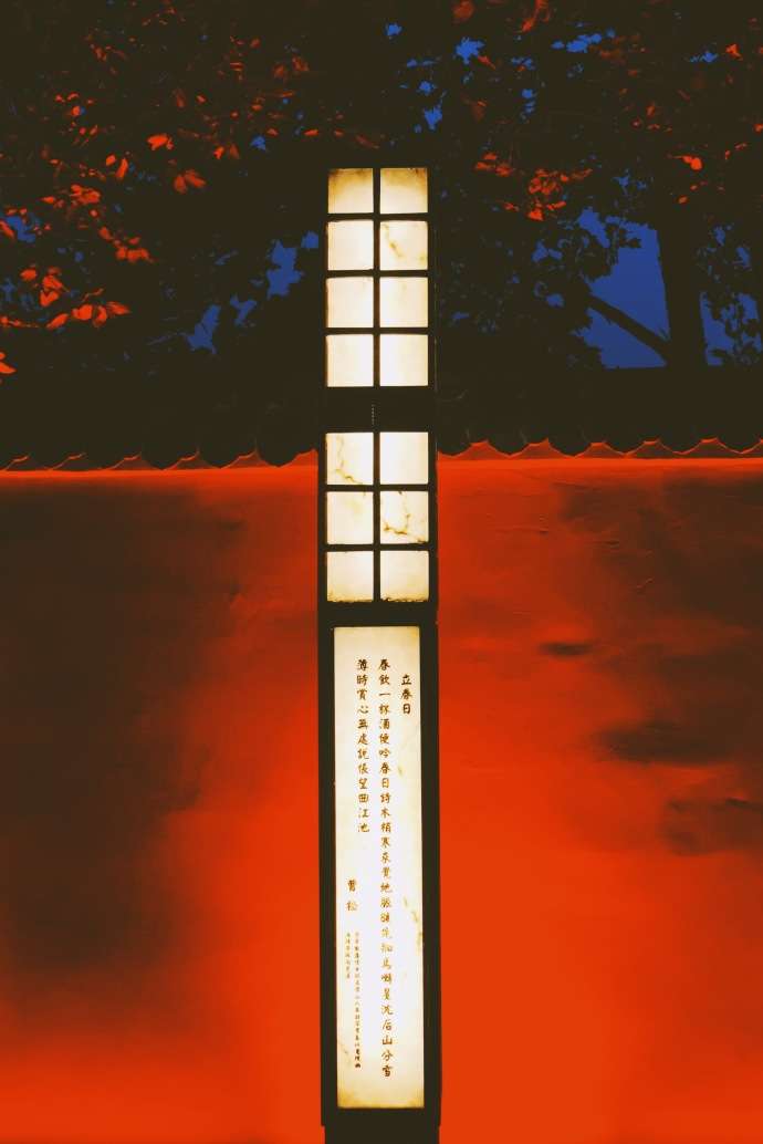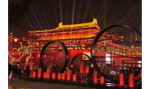 廣場上8根朱紅LED蟠龍柱高20米,柱頭直徑8.9米,柱身直徑2米,東西兩側各有四柱,取意為四方、四極、四周、四海,與八數相合,意為四面八方、四通八達,完美地詮釋了大唐不夜城的建筑美學,使得開元廣場成為了一個露天宮殿,每位置身其中的游客仿佛回到鼎盛王朝。當LED燈柱在古城夜色中點亮,不夜城更加煥發出“不夜”之魅。