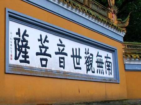 進(jìn)入普濟(jì)寺一般都要經(jīng)過一個(gè)石牌坊,此坊四柱三門,高約20米,柱上橫楣雕刻有精致的云綾和石葫蘆。坊內(nèi)北側(cè),樹一石碑,上書,“文武官員軍民人等到此下馬。”據(jù)說這是皇帝立下的圣旨,過去官吏到此,文官下轎,武官下馬,以示對觀音菩薩的崇敬。