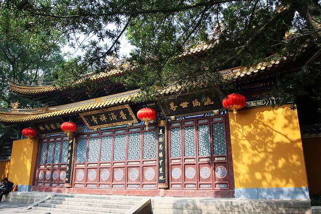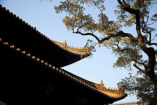 鐘鼓樓。山門東側(cè)是鐘樓,重檐歇山,內(nèi)懸大銅鐘一口,重3500余公斤,鑄于清嘉慶十二年(1807年)。西側(cè)有鼓樓,建筑形式同鐘樓。每天清晨撞鐘,傍晚擊鼓,召集僧眾參加活動(dòng),這就是古代詩文中常說的“晨鐘暮鼓”。