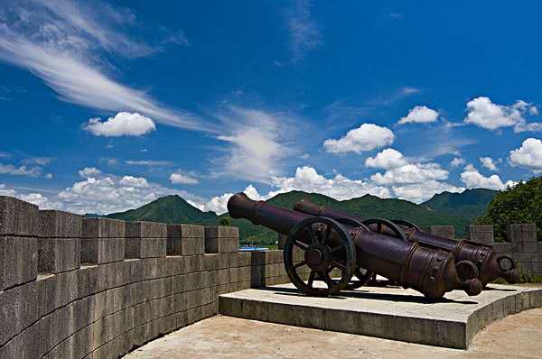 漫步東炮臺,每一處景點都閃耀著迷人的光環,每一個景色都抒散著大海的豪情。山光、海色、人文、遺址完美地結合在一起,增添了東炮臺的無限魅力;陽光、沙灘、碧海藍天、美景神韻展現出東炮臺詩情畫意的風景線。