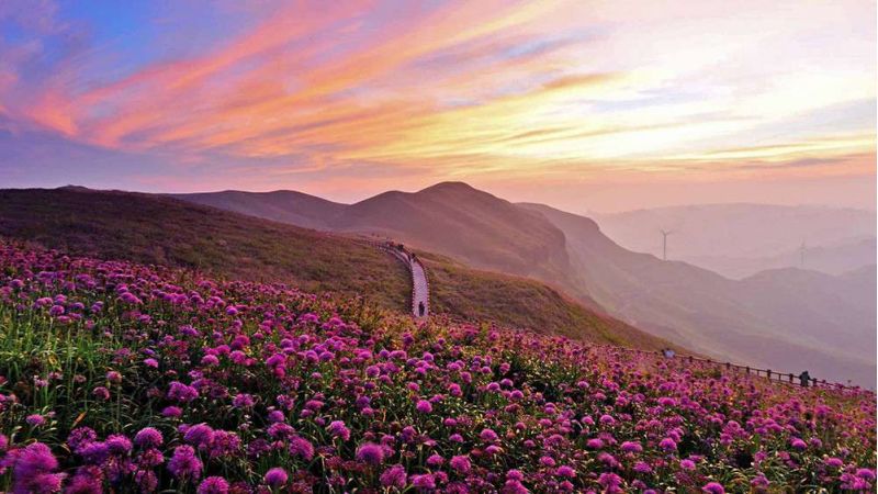 佛光是特殊氣候和地理環境下形成的光學現象,天氣驟變而造成較大水汽時,光線遇到這些水汽產生折射,才會形成佛光。在中國境內,僅在峨嵋山、梵凈山等少數地方出現過類似自然奇觀。烏蒙大草原佛光春、夏、秋三季都會出現,出現時間均在下午4點至6點左右,觀看‘草原佛光’,已成為慕名到盤縣觀光旅游的游客的向往。版權所有山東聊城聊之旅國際旅行社有限公司,轉載必究!同時,在烏蒙大草原,一臺臺新安裝的風電機組迎風而舞,似在歡迎遠方賓客。傍晚的高山草原,風車飛轉,霞光四射,金輝盡染。游客可俯瞰綿延峻嶺,仰望旋轉風車,體驗高山草原的愜意。