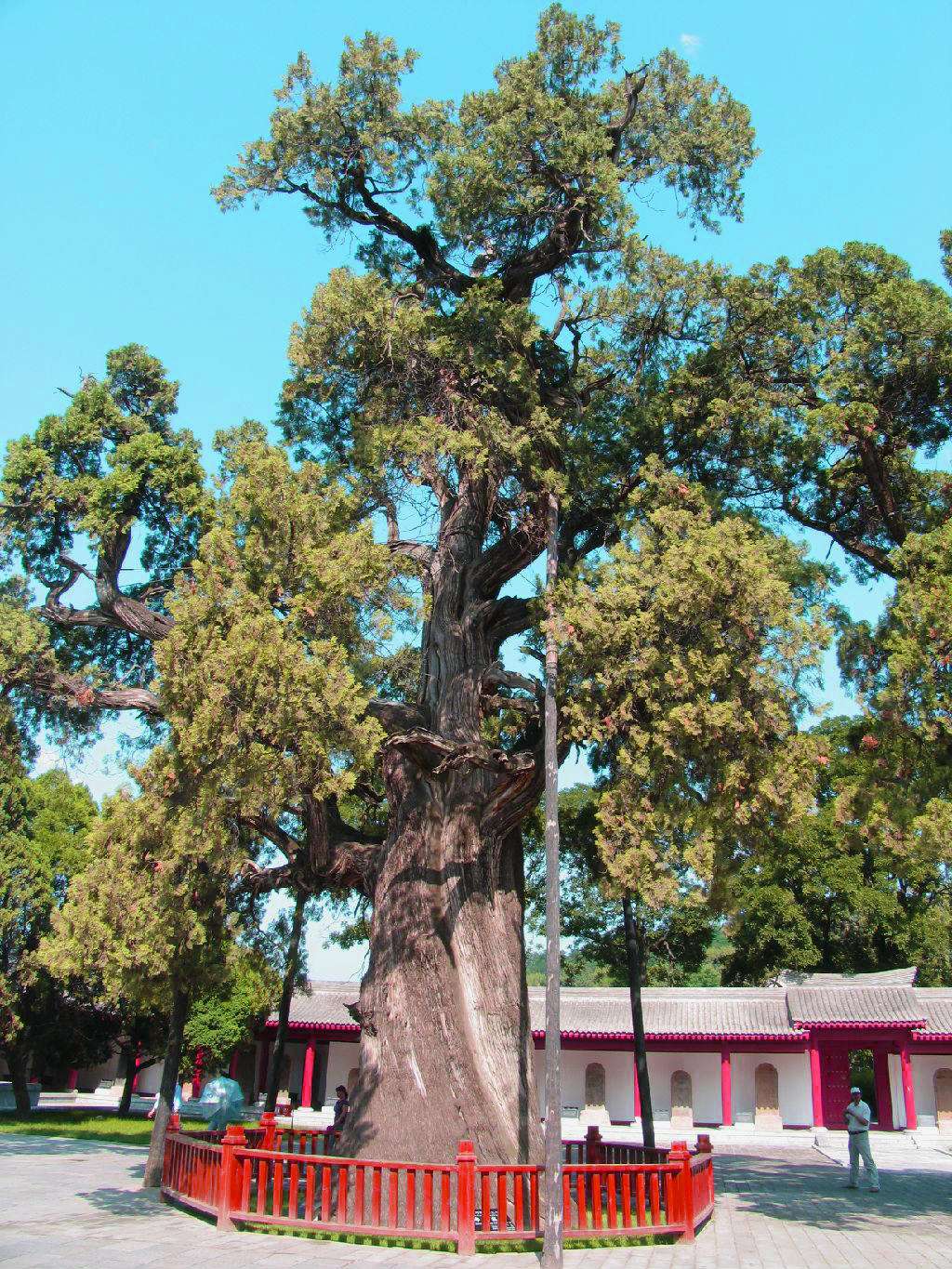 進入廟院山門,軒轅黃帝手植柏首先映入眼簾。黃帝手植柏,位于軒轅廟門內(nèi)左側(cè)2米處,傳說是黃帝親手栽植。在植物學分類上稱為側(cè)柏,別名扁柏、扁松、肩檜、黃柏、香柏,英文名稱OrientalArbor Vitae,是我國特有柏樹品種,自古以來多栽于庭園、寺廟和陵墓。版權(quán)所有山東聊城聊之旅國際旅行社有限公司,轉(zhuǎn)載必究!1982年,英國林學專家羅皮爾等人在考察了世界27個國家后來到我國,驚嘆它是“世界柏樹之父”。古柏蒼翠健旺,樹干略向南傾,樹高19.3米,胸徑11米。當?shù)刂V語稱“七摟八半,疙里疙瘩不上算”,意思是七個人手拉手摟不住,還剩八半,況且有疙瘩的地方尚未計算在內(nèi)。實為群柏之冠。